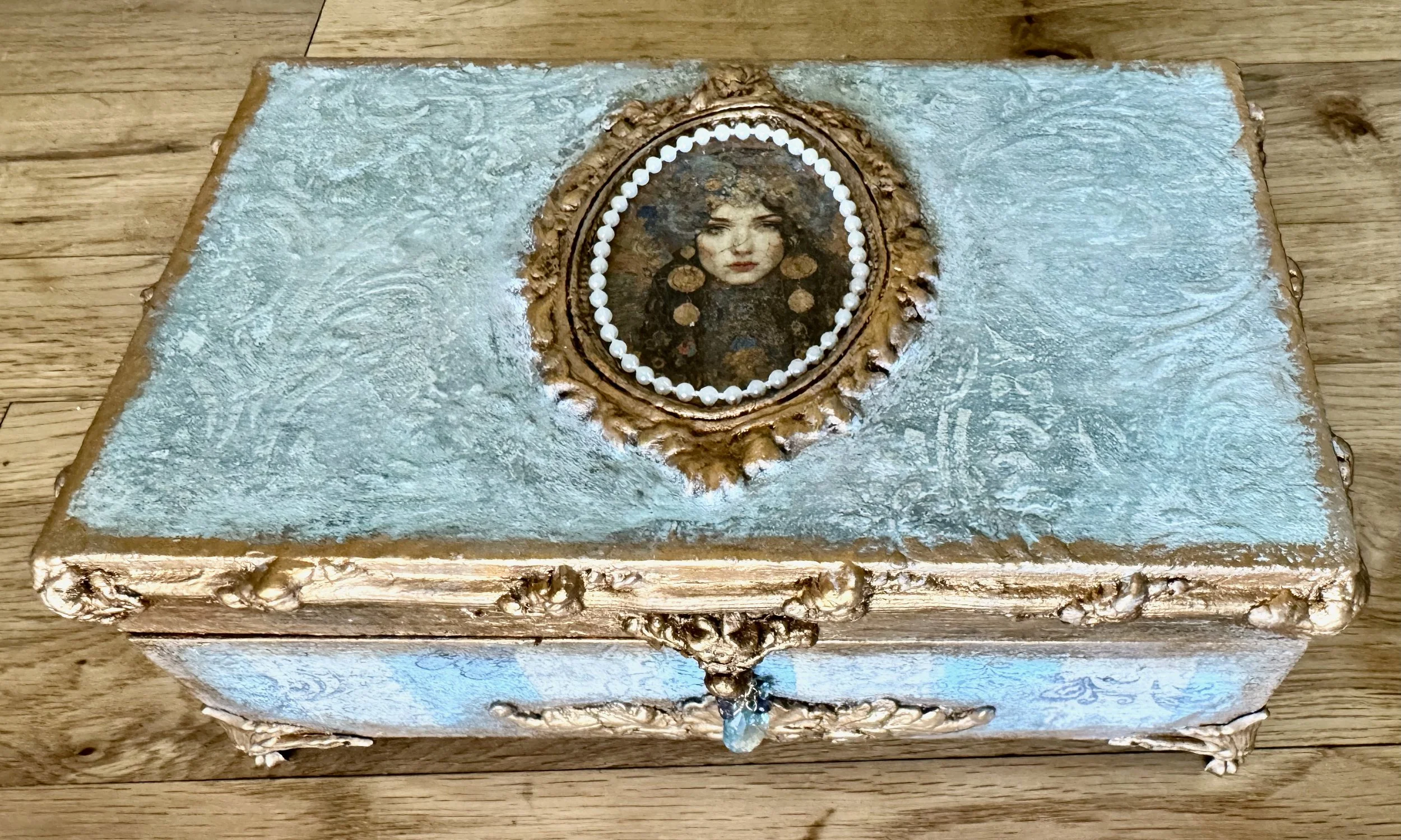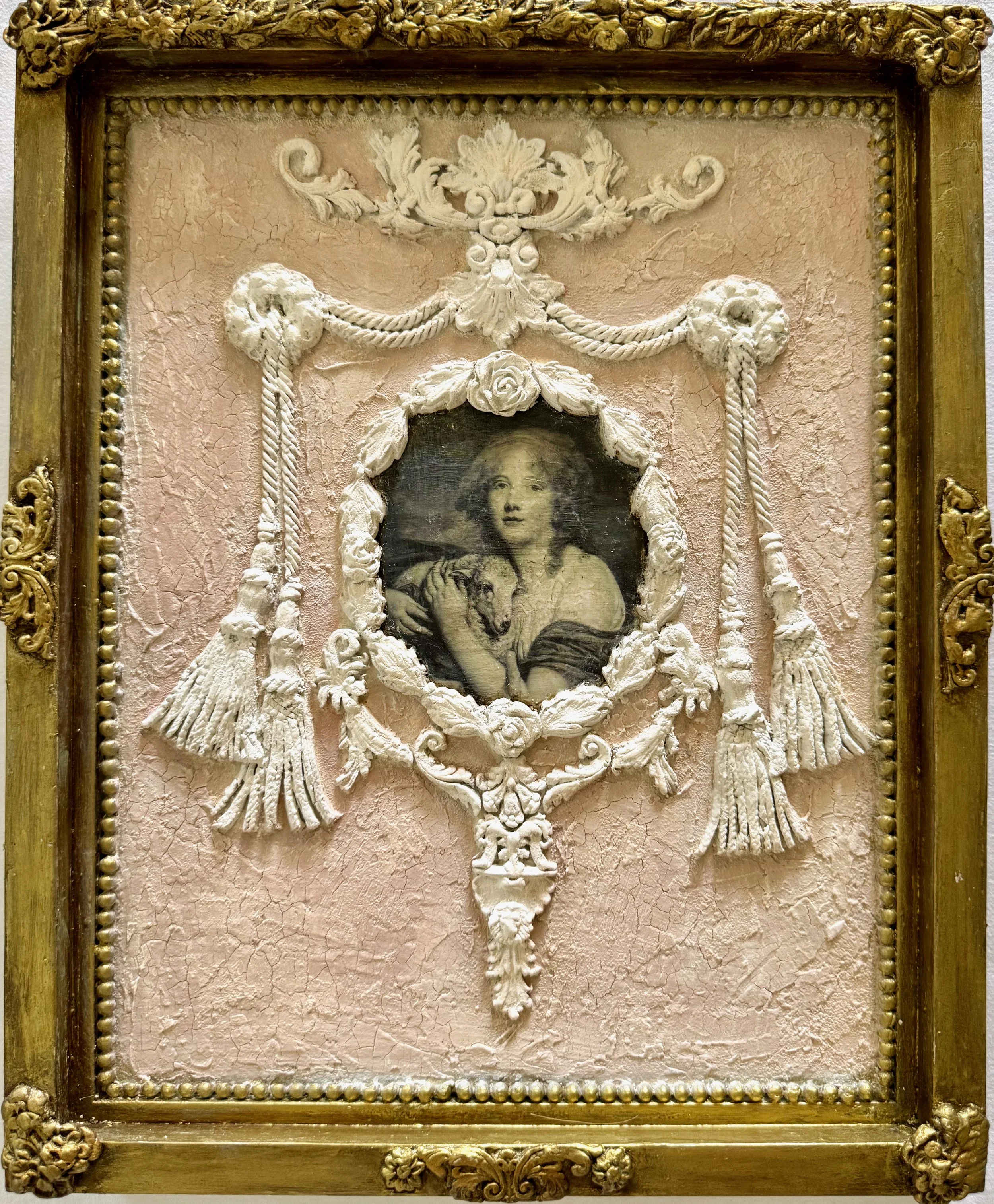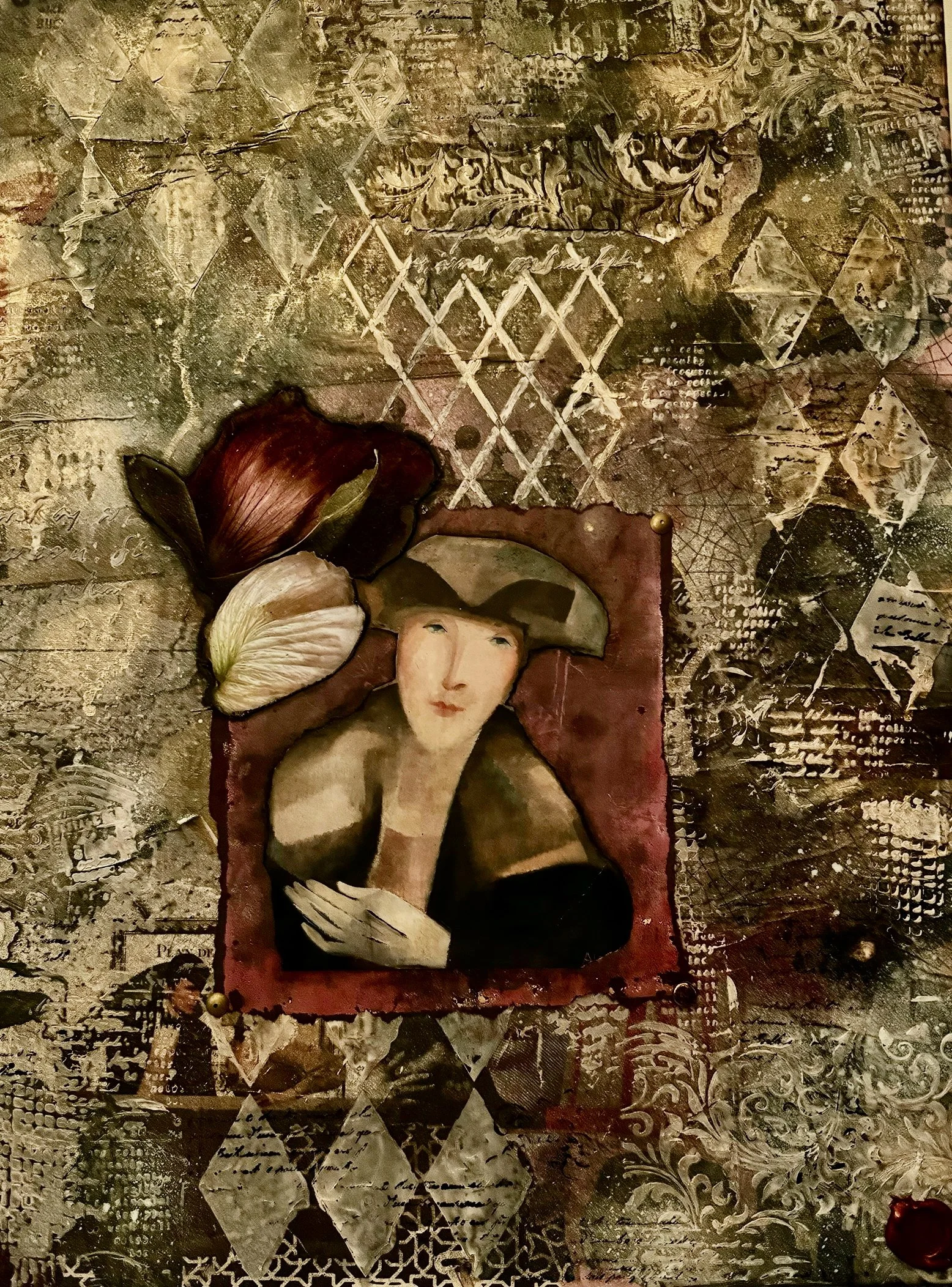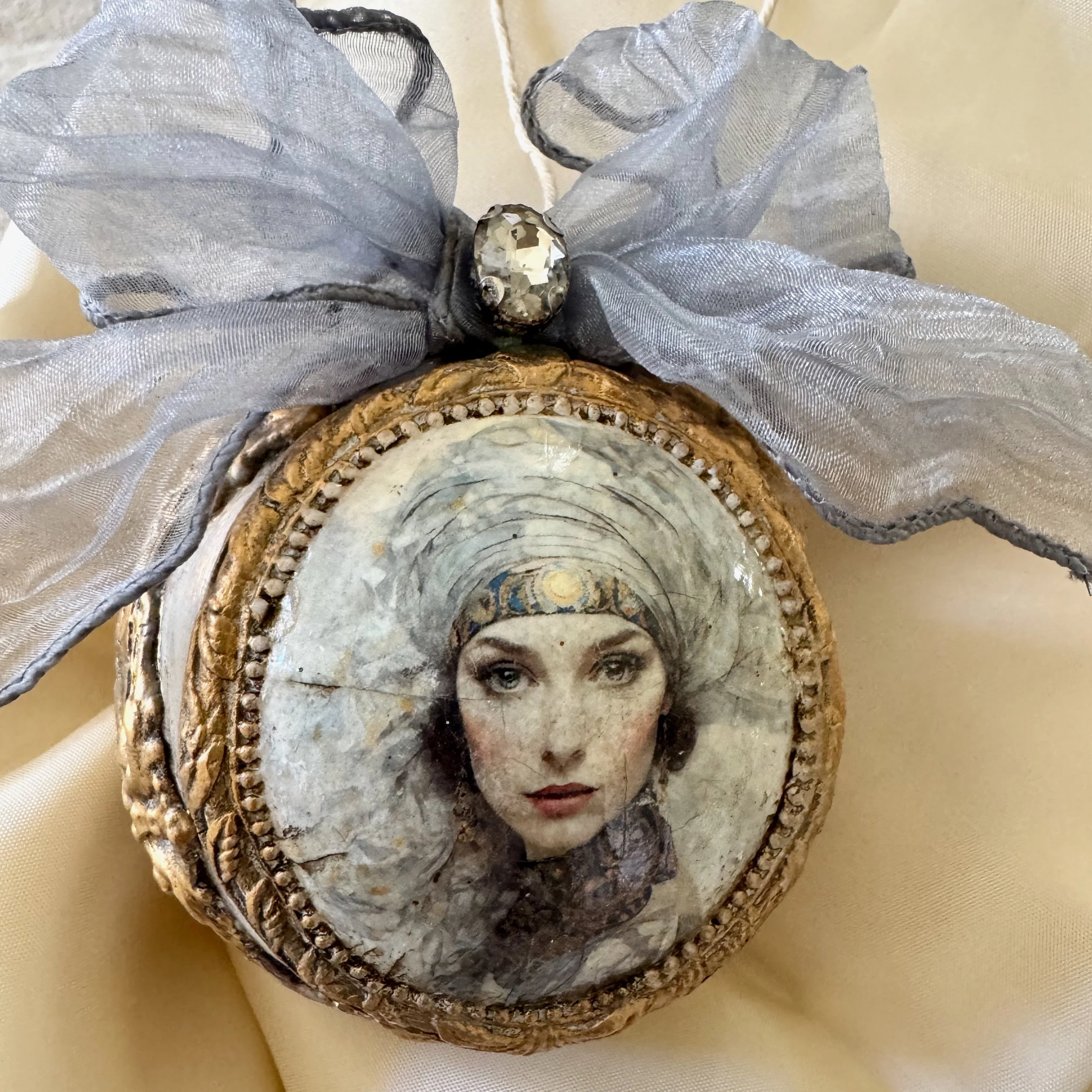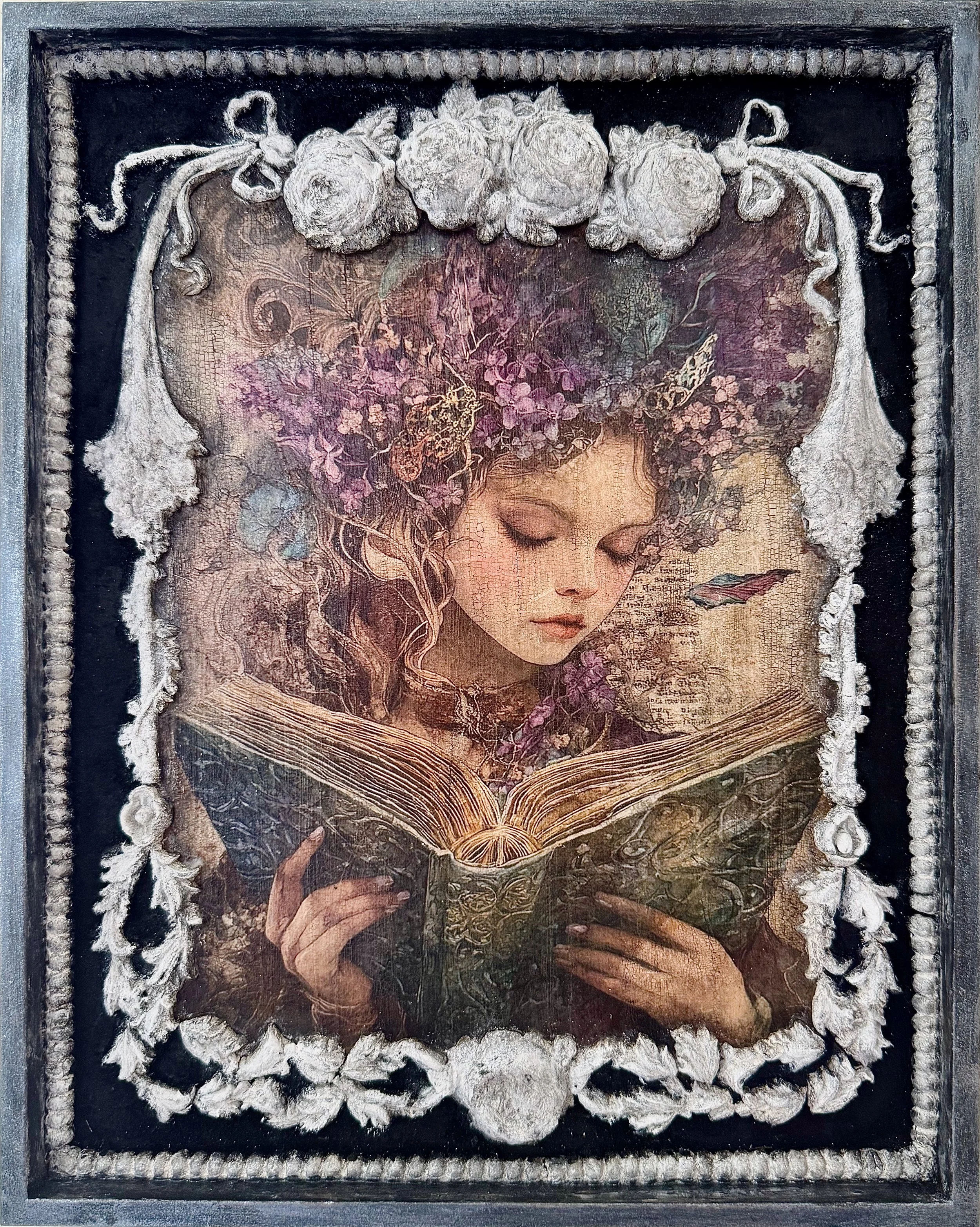 I often call my creations “reclaimed art” because I work with imagery and materials gathered from “elsewhere” and transform them into art and objects that are entirely new. My overriding goal with every piece is to bring beauty into the world, and I obsess over them, through layer upon layer and iteration after iteration, until the final resonant work emerges, perfect even in its imperfections. —Juliana